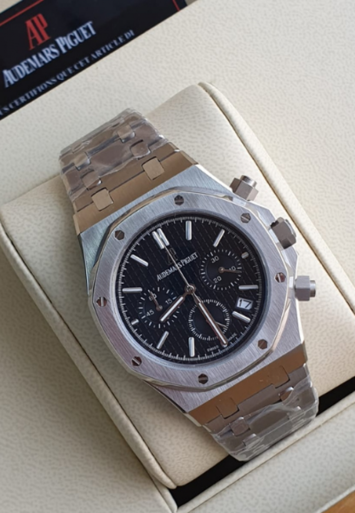ارتق بأناقتك إلى مستوى جديد مع ساعة Audemars Piguet Royal Oak Chronograph Black Dial الفاخرة، المصممة بعناية فائقة لتلبي تطلعات الرجل العصري الباحث عن التميز. تمزج هذه الساعة بين التصميم السويسري الراقي والتقنيات المتقدمة، مما يجعلها إضافة استثنائية إلى إطلالتك اليومية أو الرسمية.