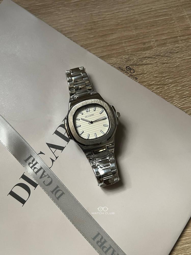 ساعة دي كابري بتصميم باتيك فيليب باللون الفضي تجمع بين الفخامة والدقة في تصميم أنيق يليق بأصحاب الذوق الرفيع.