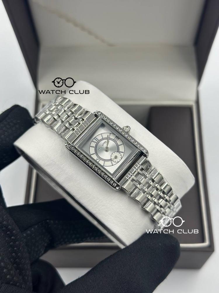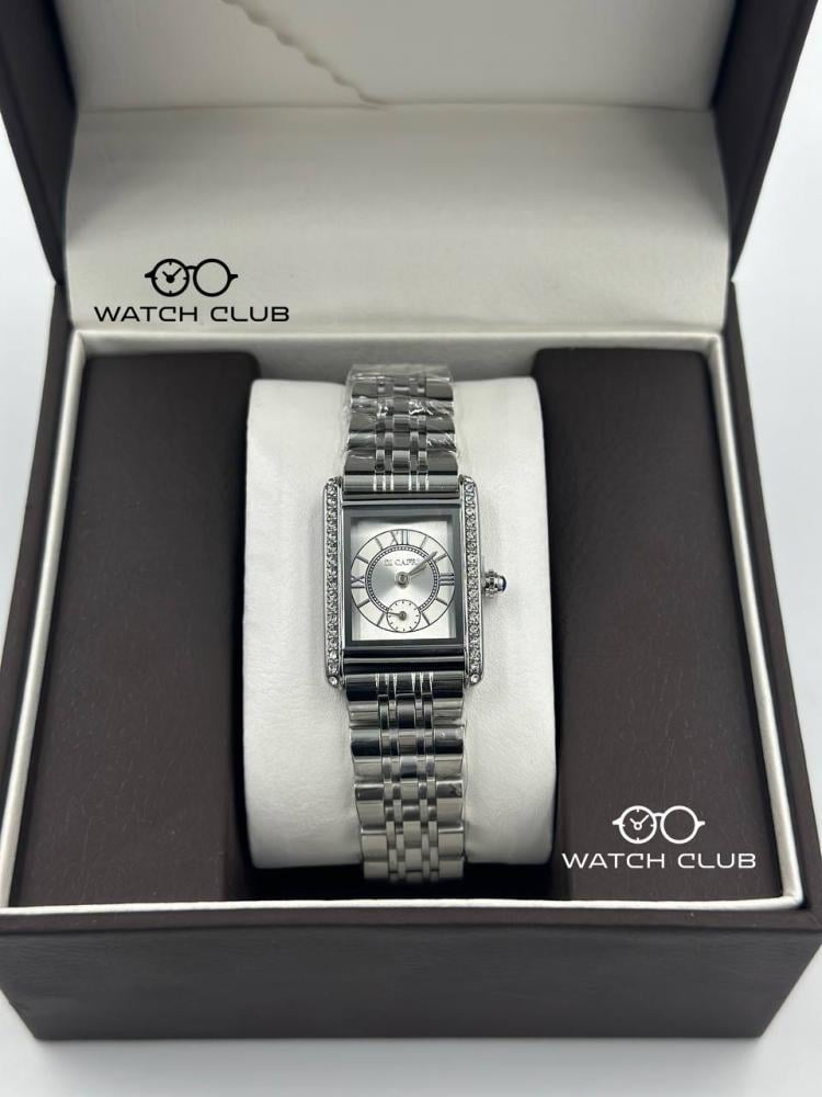 ساعة دي كابري بإطار فضي مزود بفصوص تعتبر رمزاً للفخامة والأناقة.