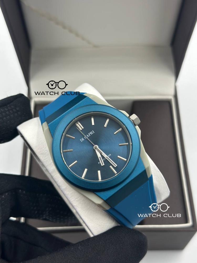 - تتميز ساعة دي كابري بلون أزرق فاتح يجذب الأنظار ويضفي لمسة من الحيوية على معصمك