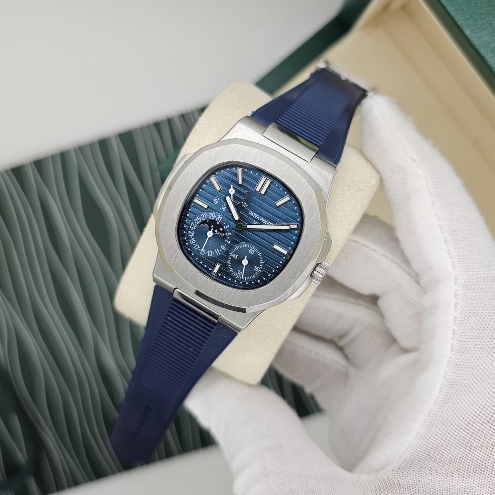 ساعة Patek Philippe Nautilus Rubber Sport بميناء كحلي و سوار كحلي هي عنوان الفخامة الهادئة.
