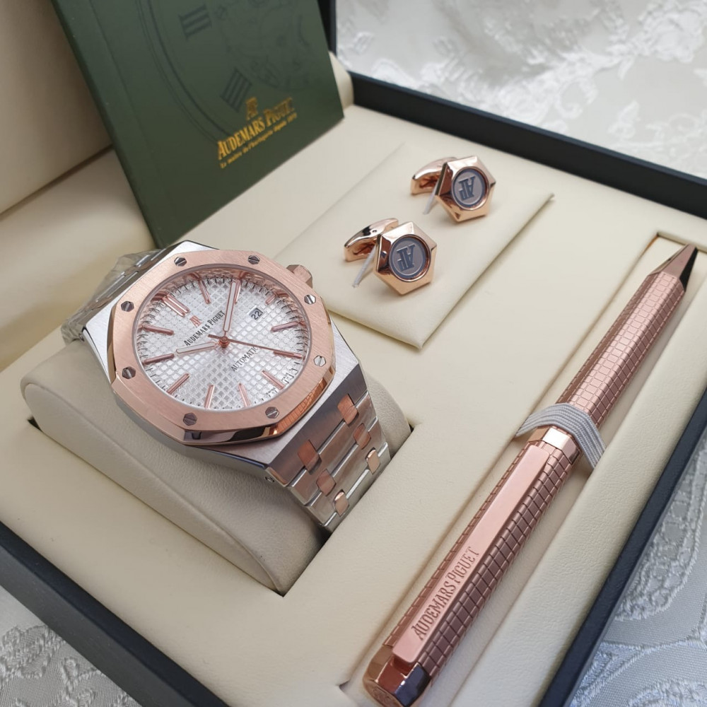 يتميز طقم أوديمار بيجيه النحاسي والفضي بتصميمه الفاخر الذي يجمع بين الأناقة الكلاسيكية والفخامة العصرية.