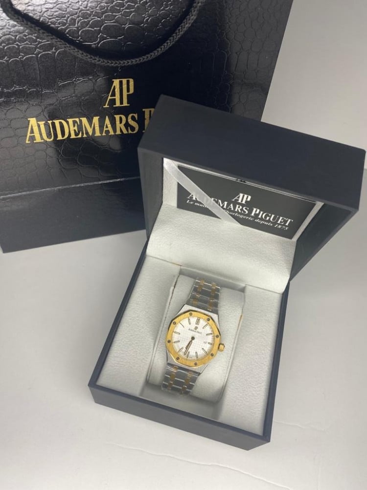 - اسم المنتج: Audemars Piguet Royal Oak Silver Watch with Gold Bezel