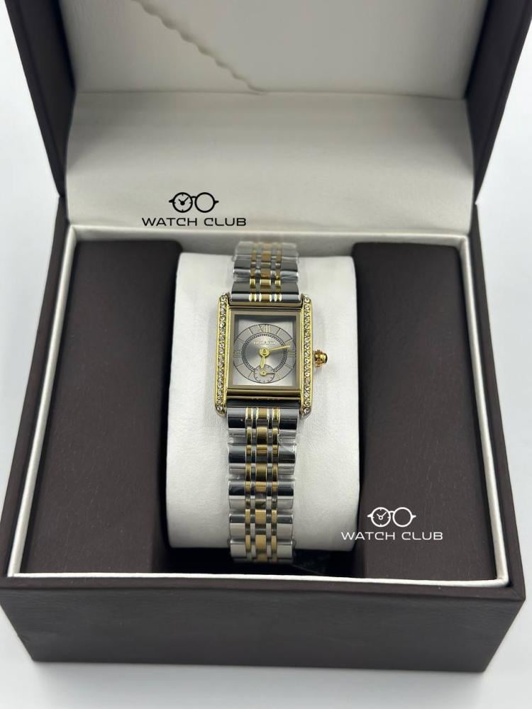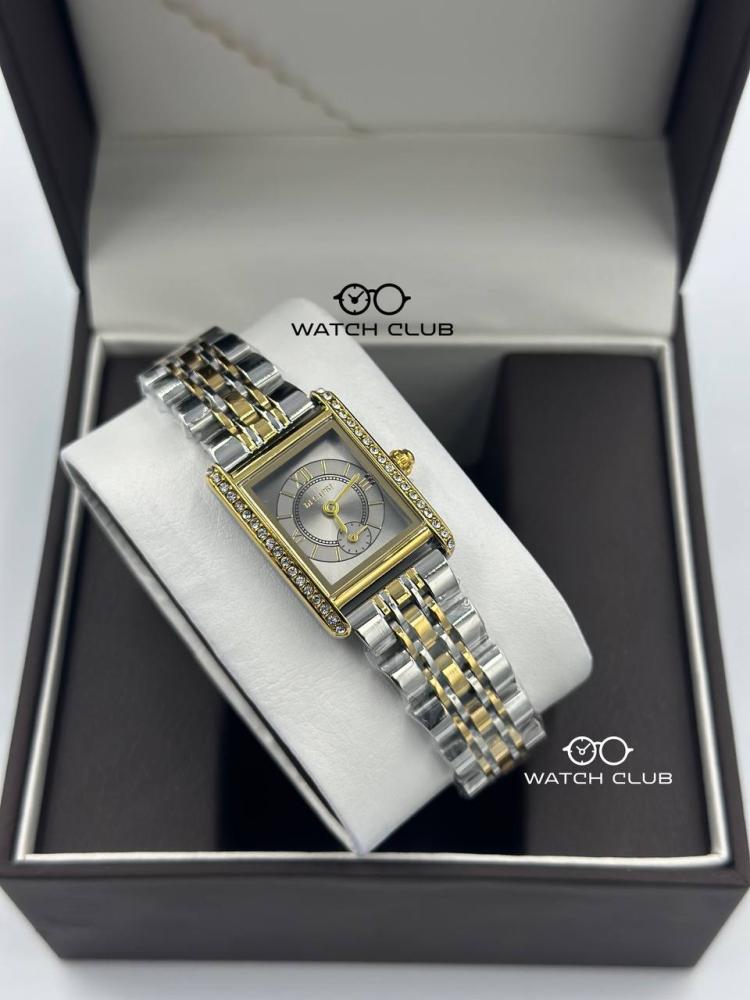تجمع هذه الساعة بين اللونين الذهبي والفضي في تصميم متناغم وجذاب، مما يجعلها إضافة مميزة لإطلالتك اليومية والرسمية.